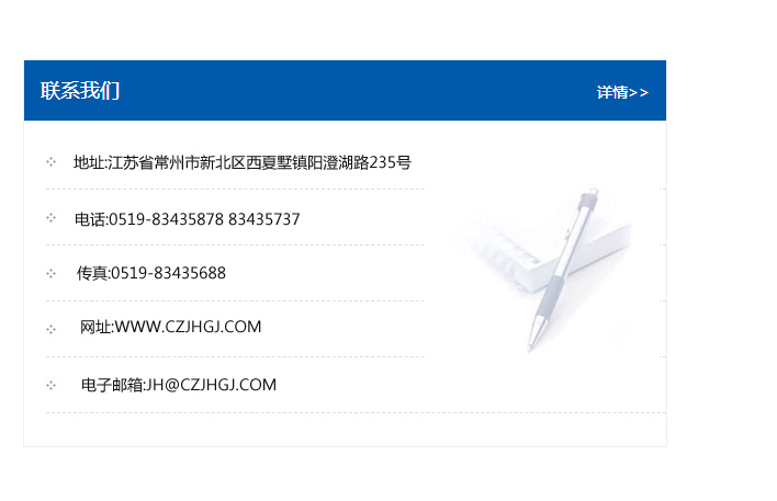 地址:常州市新北區(qū)友邦商務(wù)大廈1幢16、17層  電話:0519-85101652  傳真:0519-85112595  郵編:213022  網(wǎng)址:www.cz-jiayue_cn.kanghongzheng.com  郵箱:xiajifengaa@163.com